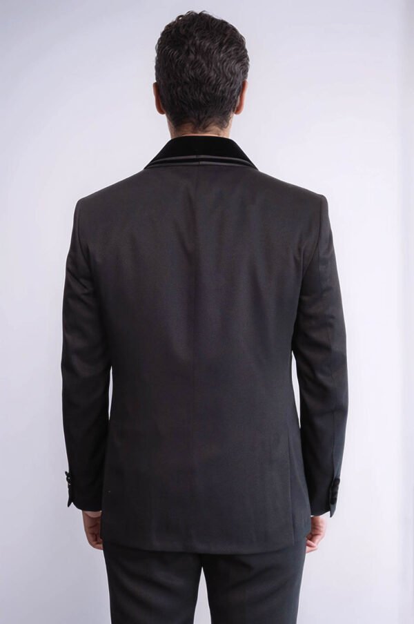 3 Piece Trim Detailed Self-Patterned Velvet Shawl Collar Black Men’s Tuxedo