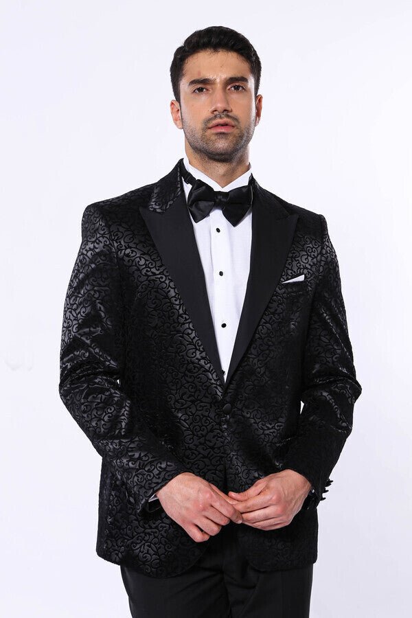This Black Floral Patterned Party Men’s Blazer from Wessi is a must-have for any formal occasion. Crafted from high-quality materials, it features a unique floral pattern that sets it apart from traditional blazers. Elevate your style and make a statement with this elegant and sophisticated piece.