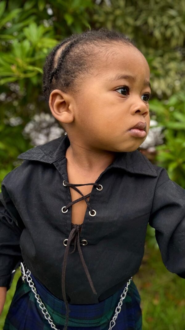 This timeless Black Watch tartan kidswear set is a refined blend of heritage and modern tailoring. Crafted in the iconic green and navy tartan pattern, the set features a jacket layered over a matching inner laced shirt, paired with a traditional kilt for a complete ceremonial look.