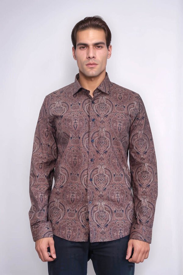 Brown Patterned Slim Fit Men’s Shirt