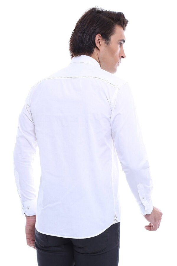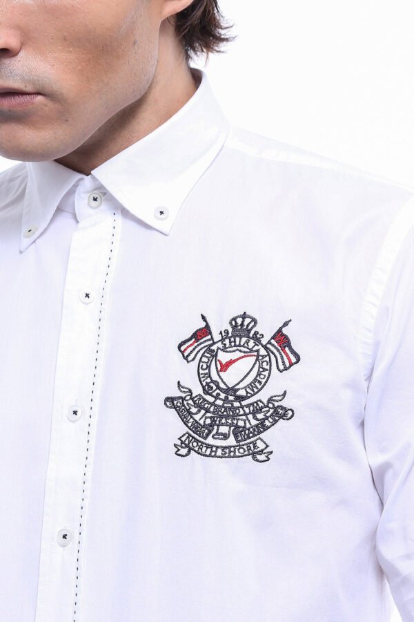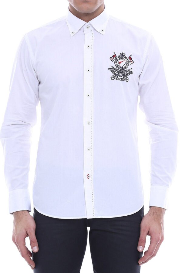 Crafted from high-quality cotton, this shirt ensures a breathable and soft feel against your skin, making it an ideal choice for any occasion. The slim fit design is tailored to provide a modern and polished look, complementing your silhouette without sacrificing comfort. The crisp white fabric serves as a versatile canvas, effortlessly elevating your wardrobe with its classic appeal. What sets this shirt apart is its unique chest embroidery pattern, adding a touch of sophistication and personality. The intricately embroidered details showcase fine craftsmanship, making a subtle yet distinctive statement. The embroidery not only adds visual interest but also adds a tactile dimension to the shirt, ensuring you stand out with style. Whether you’re heading to a formal event, a casual outing, or the workplace, this shirt effortlessly transitions between occasions. The long sleeves provide a refined touch, making it suitable for cooler weather or when you want a bit more coverage.