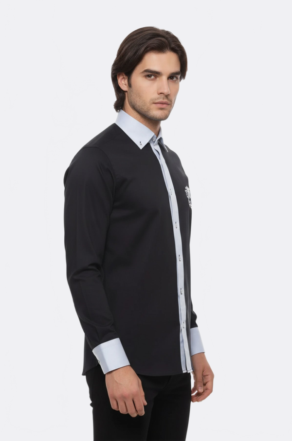 The Cotton-Satin Black Men’s Sport Shirt by Binye combines the comfort of cotton with the luxurious sheen of satin. Perfect for workout or casual wear, this shirt offers both style and functionality. Stay cool and confident in this versatile and durable sports shirt.