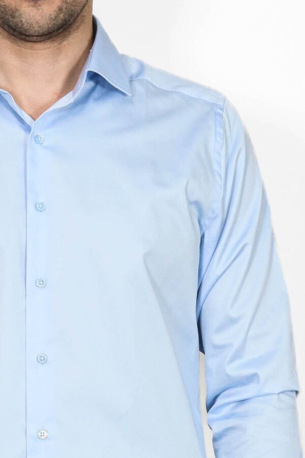 Satin shirt is quite popular with its ice blue color. The fabric of the product is satin and cotton. It is very comfortable to use thanks to its cotton fabric. You can easily use it both in daily life and on your special days. It is also very interesting thanks to its satin structure. The model of the product is slimfit. It shows your physique much better with slim fit model. One of the most preferred models of the recent times, the shirt can be said to keep its place in the coming seasons.