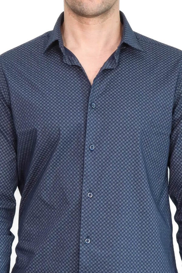 Dark Blue Tiny Check Patterned Slim Fit Shirt