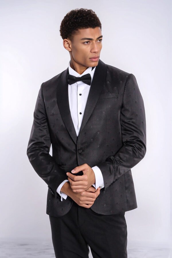 Dot Patterned Slim Fit Black Men Prom Blazer