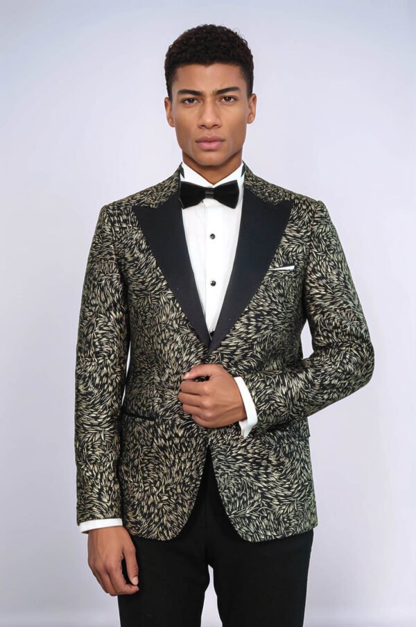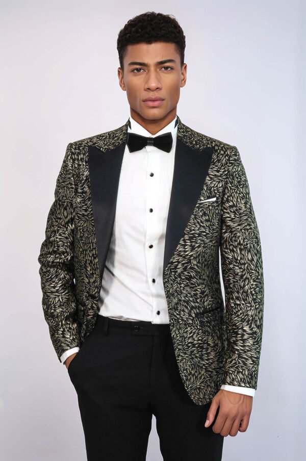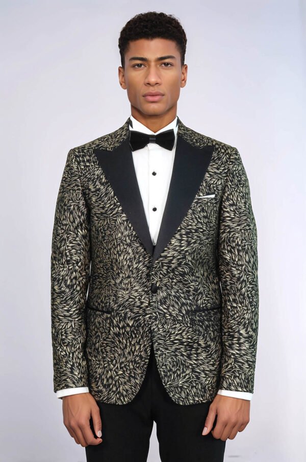 Feather Patterned Slim Fit Black Men Prom Blazer