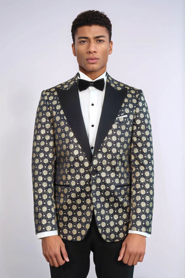 This Floral Patterned Peak Lapel Navy Blue Men Prom Blazer from Wessi adds a touch of sophistication to any formal occasion. Crafted with a stylish floral pattern and a sleek peak lapel design, this blazer is sure to make a statement. Elevate your style and stand out from the crowd with this expertly tailored piece.