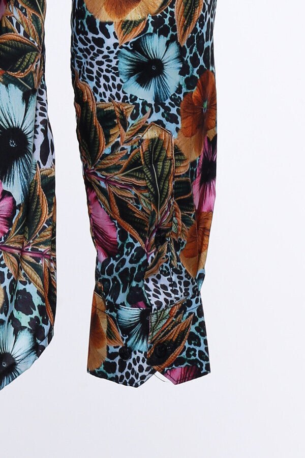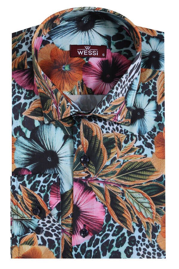 Floral Patterned Slim Fit Long Sleeves Multicolor Men Shirt