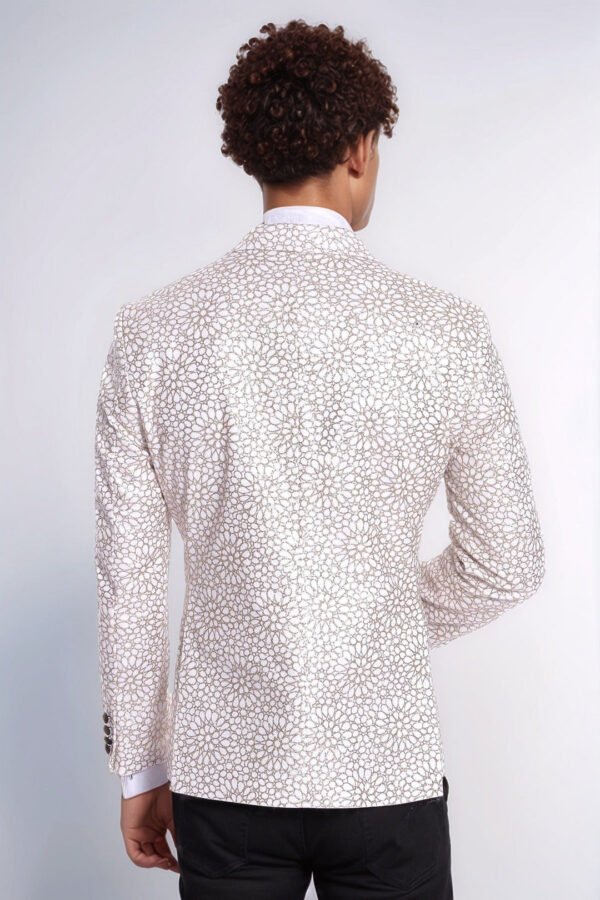 Flower Embroidered Pattern White Men Prom Blazer