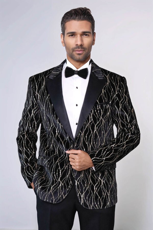 Gold Patterned Black Men Prom Blazer