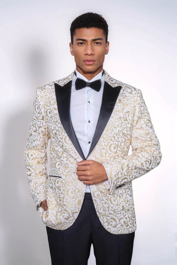 So if you’re feeling stuck for ideas on how to put together your outfit for your next night event – fear not! For your special occasions, you need something that will make a lasting impression – and this elegant men’s prom blazer surely fits the bill! The crisp white color is made even more dashing with a gold pattern that sparkles in the light. This classic piece of men’s fashion is sure to have heads turning wherever you go! Not only do they give off an air of sophistication, but they are also incredibly comfortable and versatile; meaning that you can dress them up or down depending on the occasion. Wear it to graduations, parties, weddings or any night event and enjoy the highest quality craftsmanship. Plus, with its unique patterning, this blazer will make sure that you stand out from the crowd in all of the right ways!