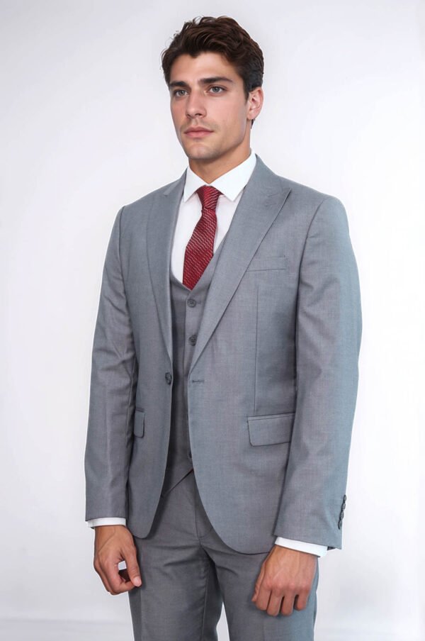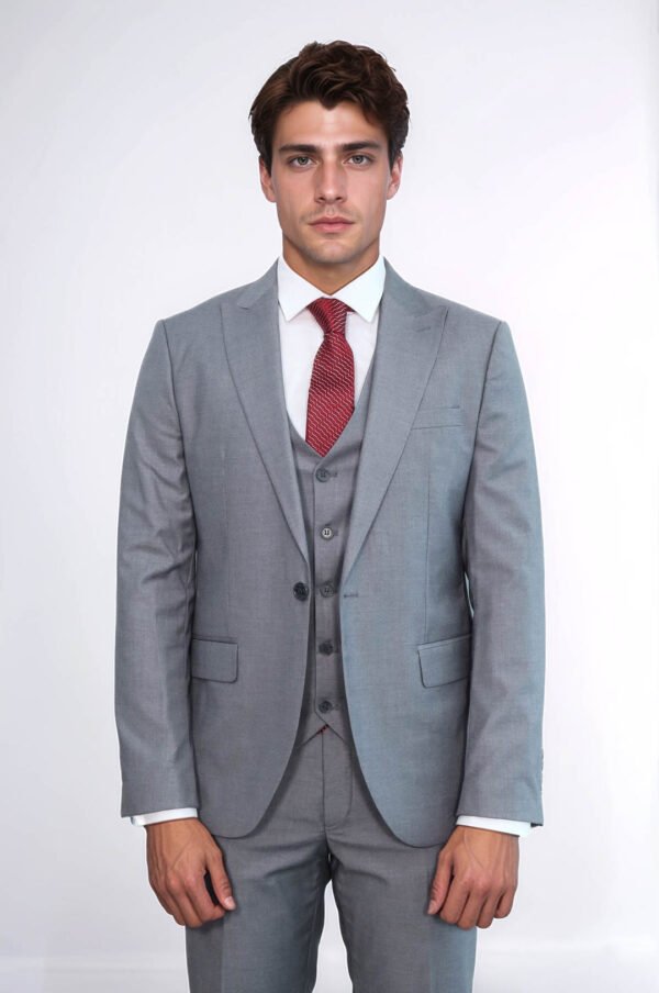 Therefore, footwear choices complete the ensemble. Black leather shoes with a matching belt elevate formality, while loafers or clean sneakers add contemporary flair. The Grey Suit with Vest adapts seamlessly across different settings, making it a reliable wardrobe staple for every gentleman.