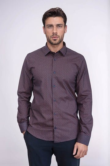 Houndstooth Pattern Slim Fit Burgundy Men Shirt