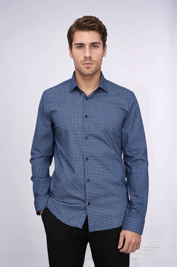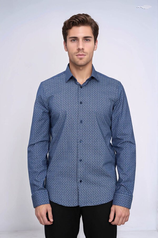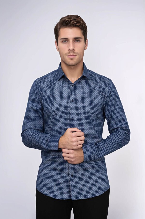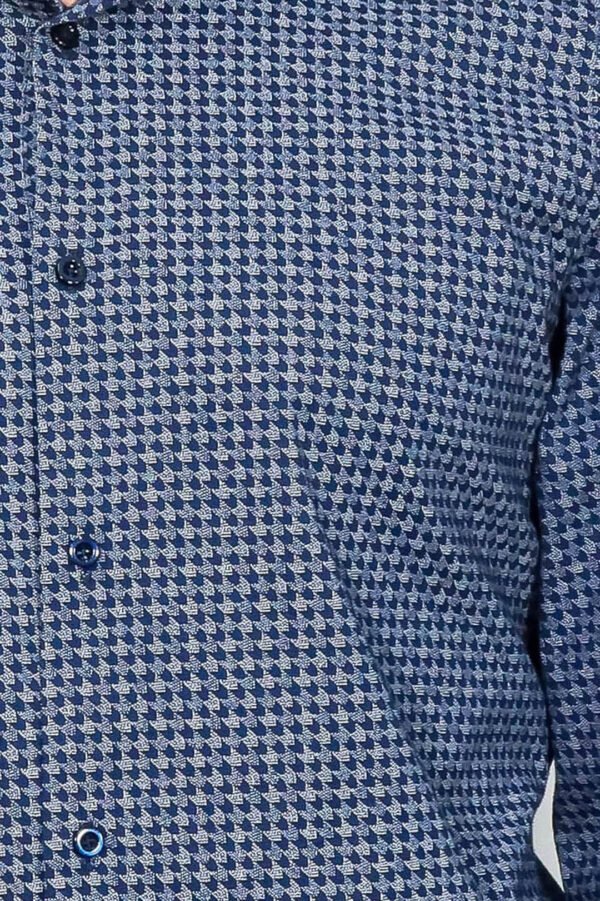 Houndstooth Pattern Slim Fit Navy Blue Men Shirt