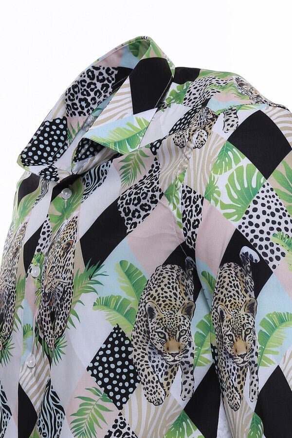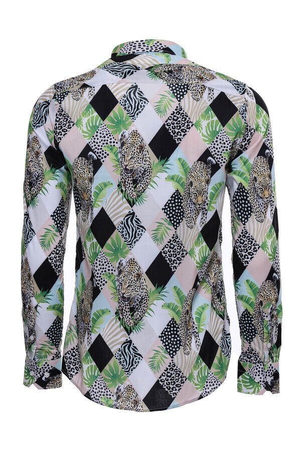 Leopard Pattern Long Sleeves Multicolor Men Shirt