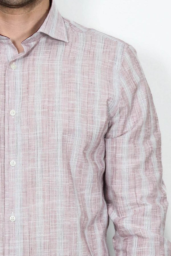 This men’s shirt, which is completely made of cotton fabric, draws attention with its red – burgundy color. This shirt, which has a plaid pattern, forms this pattern with the combination of small dots. It is a very suitable shirt for daily use. This long-sleeved shirt proves the skillful combination of elegance and sportswear. With a slim fit structure, this shirt, which you will like more when you see it, has a pocket part. It offers sports elegance with its buttonless collar.