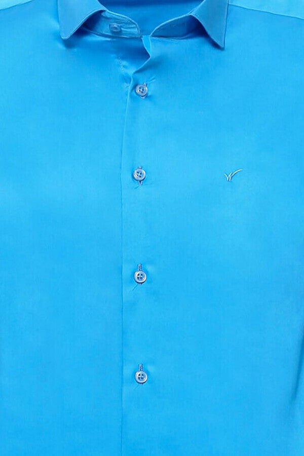 Long Sleeves Cotton Satin Slim Fit Turquoise Men Shirt