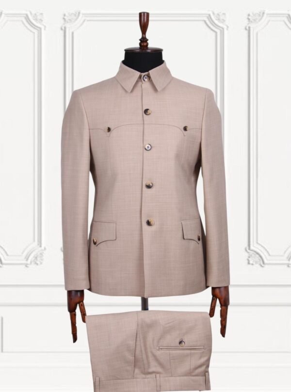 The Teal Safari Suit blends boldness with sophistication. The carefully balanced tone commands attention without overwhelming your presence. Its clean detailing and polished finish highlight expert craftsmanship, making it perfect for modern gentlemen who appreciate standout elegance. Pair with neutral accessories for a refined look or elevate with statement shoes for added flair.