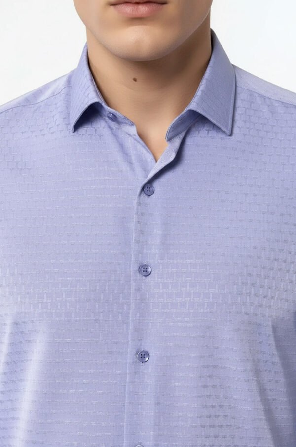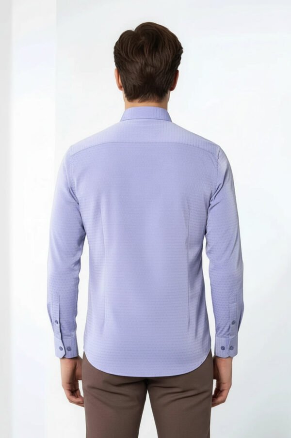 Slim fit men’s shirt made of %100 cotton patterned fabric in blue.