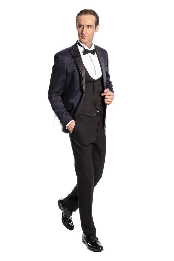 Patterned Combined Navy Blue Men Tuxedo