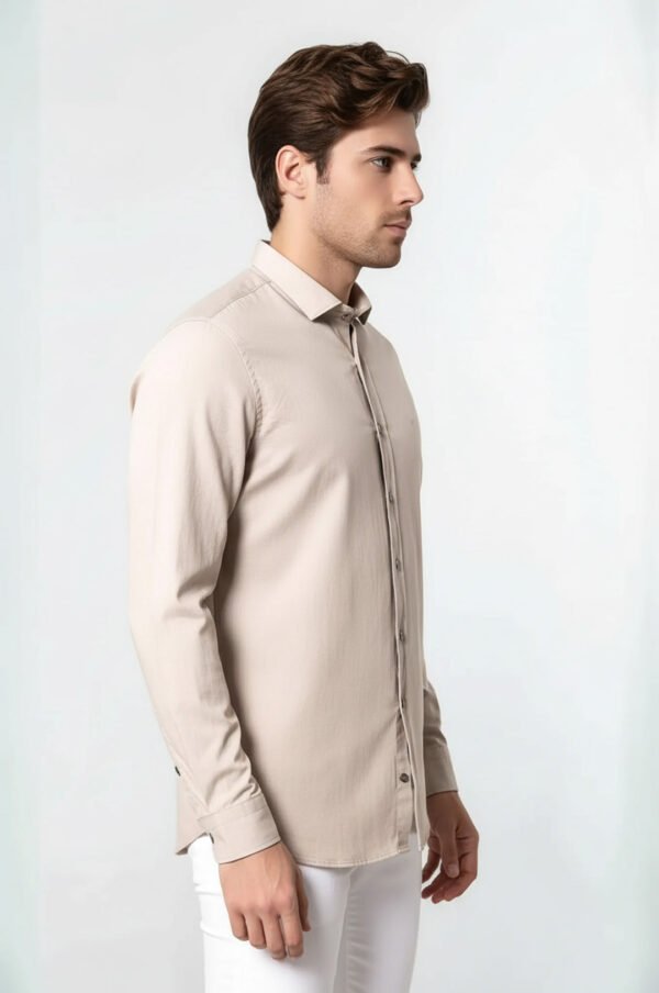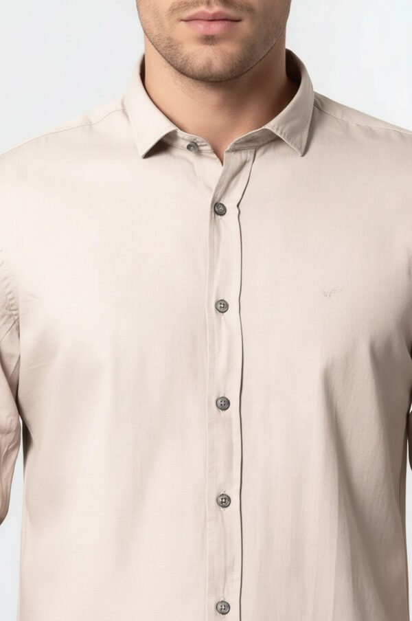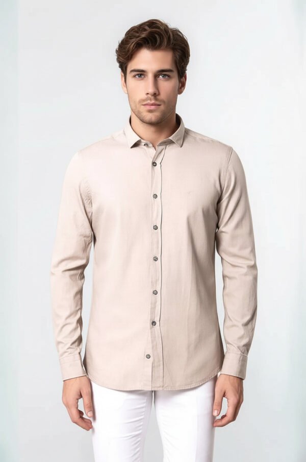 Patterned Cotton Slim Fit Beige Shirt