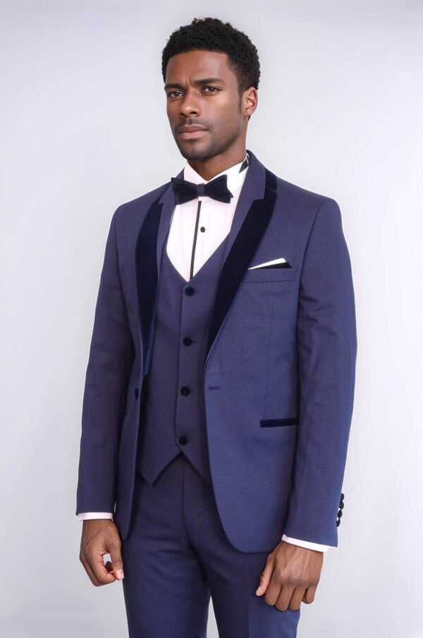 Patterned Velvet Lapel Navy Blue Tuxedo