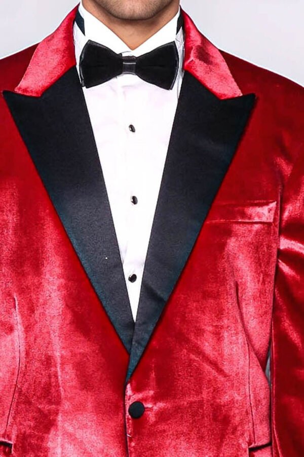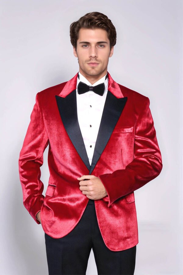 This red tuxedo jacket, which is an elegant option for men, stands out with its pointed collar and velvet texture, while also accommodating a wide range of sizes for every man. It is also a perfect choice for special events, invitations, or special occasions. The high-quality velvet fabric provides a luxurious look and effortlessly gives you an impressive appearance. The red color helps you reflect your style with an energetic and vibrant expression. This jacket is an excellent choice to add a sophisticated touch to any formal situation. You can further customize your style with different combinations. For example, by adding a white shirt, black trousers, and an elegant black bow tie, you can achieve a chic and flawless look. When you want to feel special and enchant those around you, this tuxedo jacket complements you perfectly. While enjoying every moment, you can showcase your style with combinations that highlight your elegance.