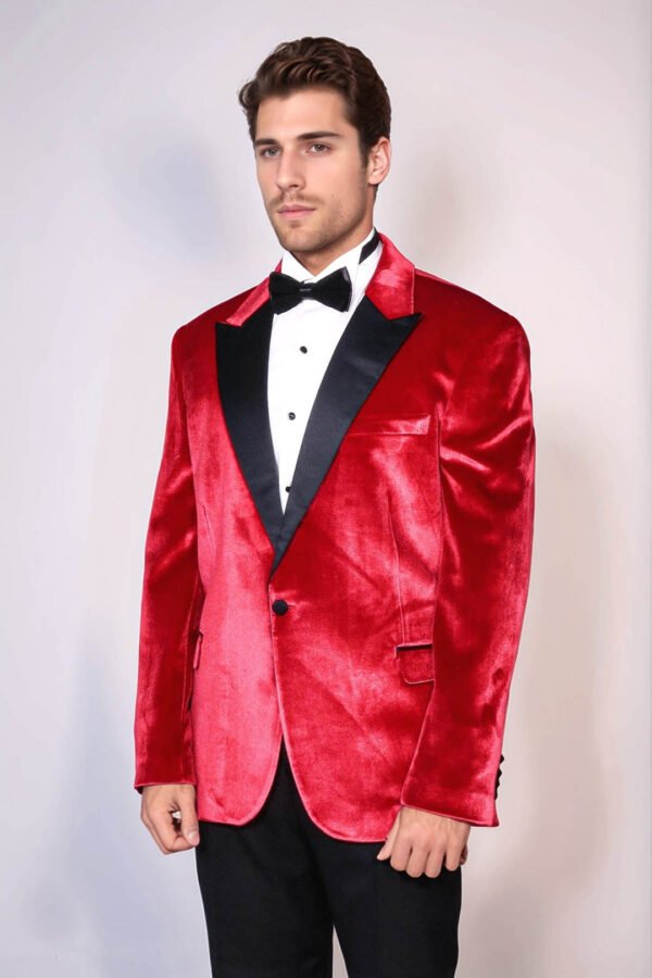 Peak Lapel Velvet Red Men Prom Blazer