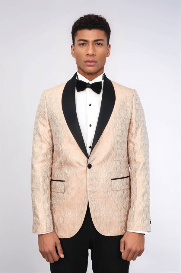 When it comes to special occasions, men’s fashion can be a tricky one. Whether you’re attending a wedding or hitting the town for your anniversary dinner, we have a very special offer for you. First up, if you want to stand out from the crowd then it’s time to get patterned! A patterned shawl lapel cream tuxedo blazer is sure to make an impression with its subtle yet stylish design. Whether you team it with jeans or slacks and smart shoes, this classic piece of attire is sure to bring that extra something-something to your outfit. If a tuxedo blazer is what you’re after this season, why not consider one with a patterned shawl lapel? Not only does this look incredibly sharp and stylish but it’s also great for those who want to make more of an effort than just wearing a typical black tuxedo blazer.