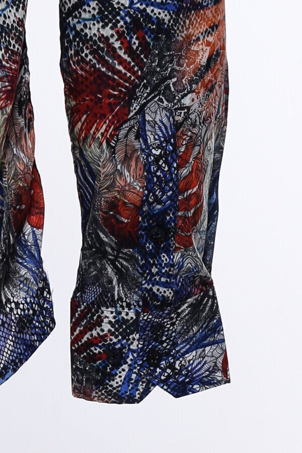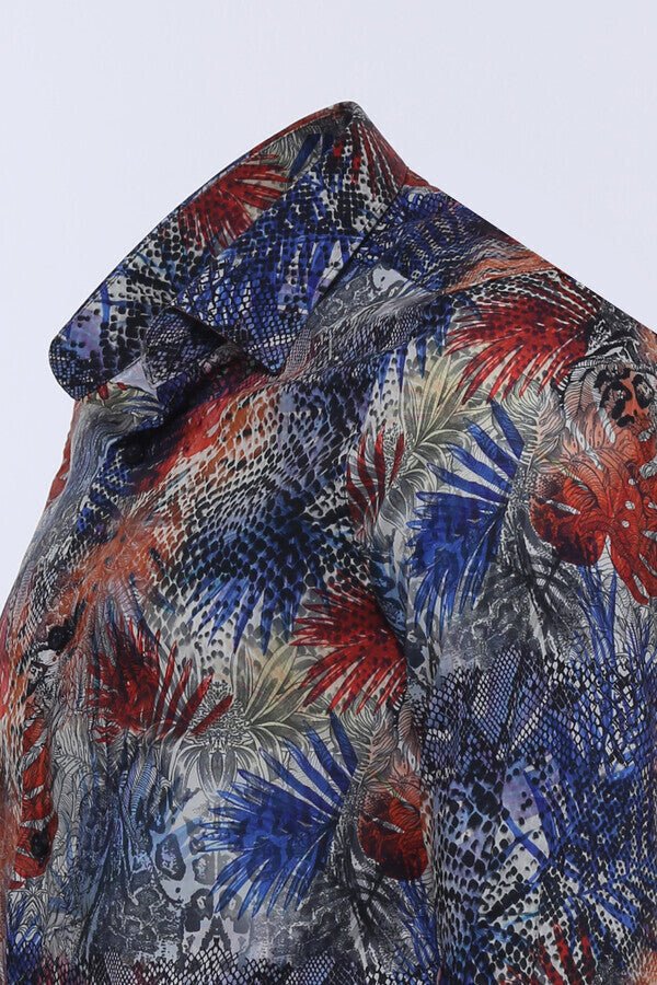 Red Leaf Patterned Navy Blue Men Shirt