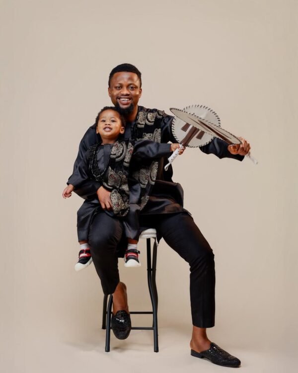 Designed as a complete statement piece, this set is suitable for boys and men alike, making it ideal for family ceremonies, cultural celebrations, weddings, chieftaincy events, photoshoots, and special occasions. The timeless black palette allows versatility while maintaining a regal and commanding appearance.
