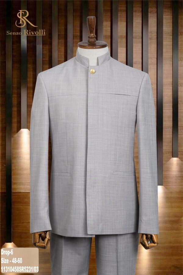 This Light Grey safari suit from Binye Store is tailored for the man who prefers clean design with a strong, confident presence. The soft grey tone brings a calm elegance to your wardrobe, making it a perfect choice for weddings, formal celebrations, receptions, and high-profile occasions.