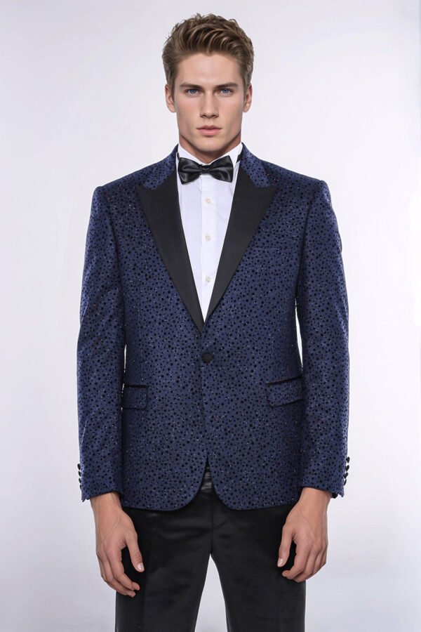 Shiny Dot Patterned Navy Blue Men Prom Blazer