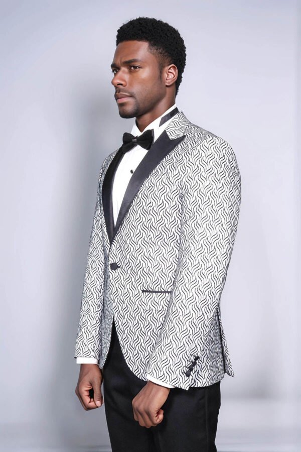 For the man who wants to upgrade his party look, there is no better way than with a shiny patterned white slim fit blazer. This timeless piece of clothing will give any ensemble an instant lift and make you look stylish and polished in any setting. Whether you’re going out for dinner or hitting up a club, this classic blazer will add a touch of elegance to your look. This style of blazer is easy to dress up or down depending on the occasion. You can pair it with slacks for formal occasions, chinos for smart casual events or jeans for something more relaxed. To complete your outfit, opt for a white shirt, tie and pocket square as well as some statement accessories such as cufflinks or watches—all in matching colors!