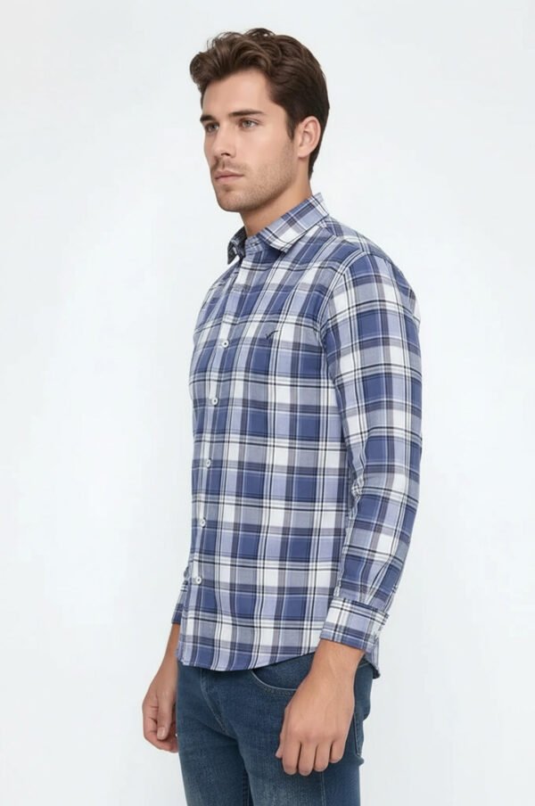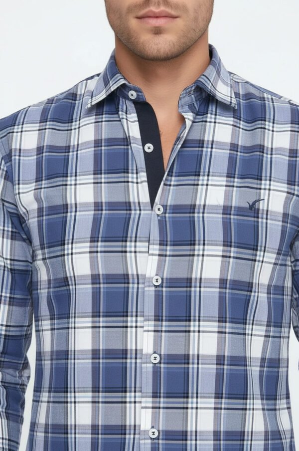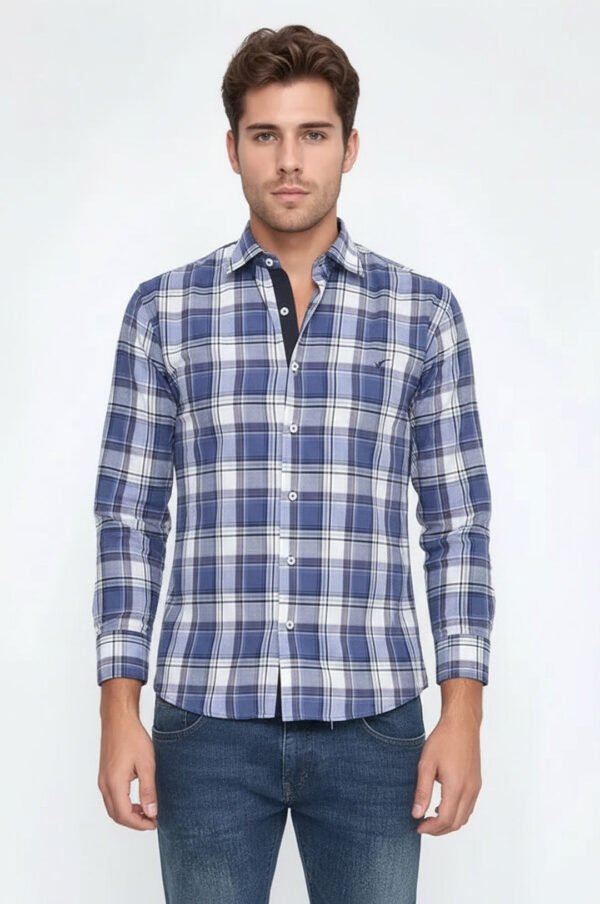 Slim Fit Plaid Patterned Navy Blue Shirt