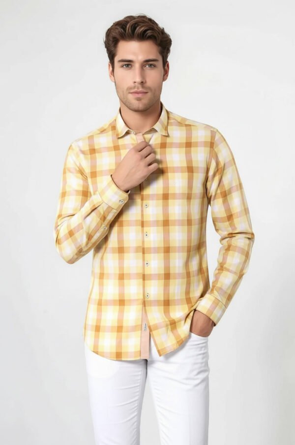 Slim Fit Plaid Patterned Yellow Shirt