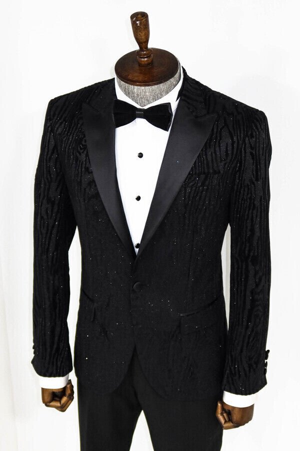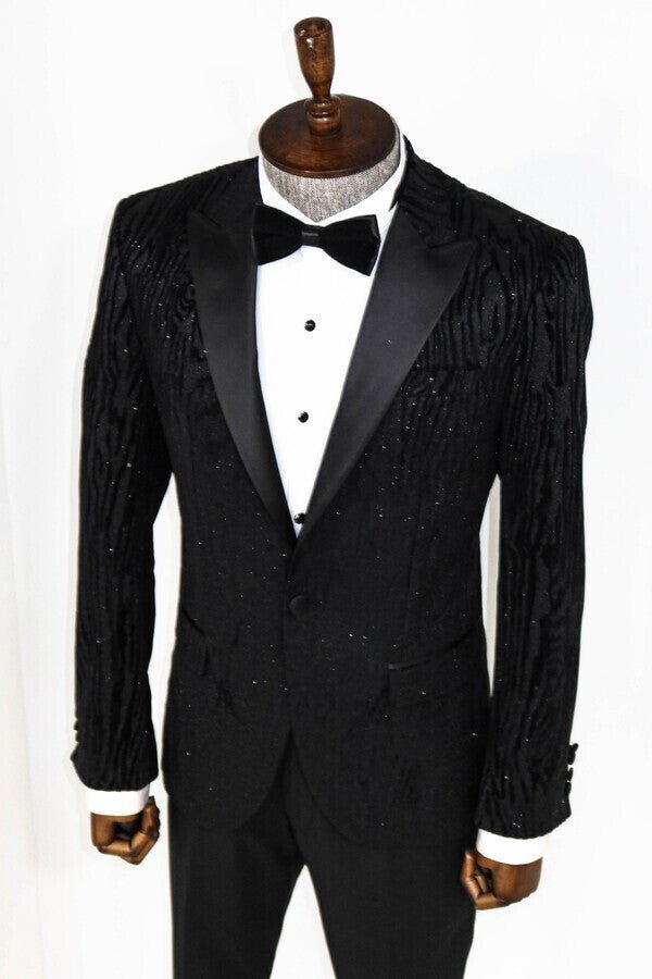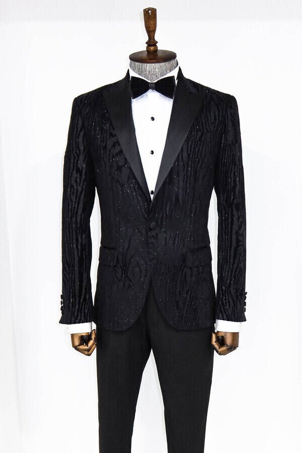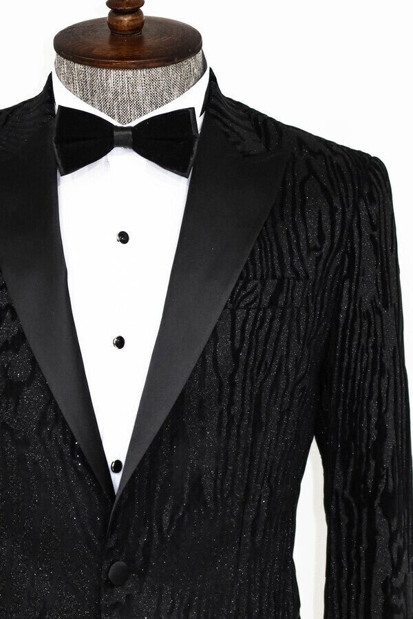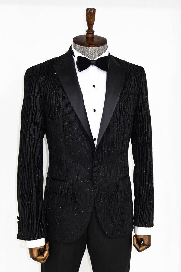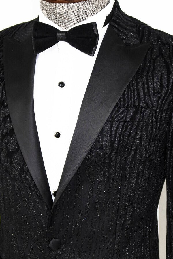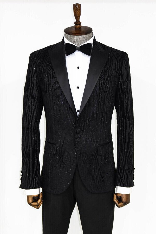Slim Fit Zebra Patterned Black Prom Blazer