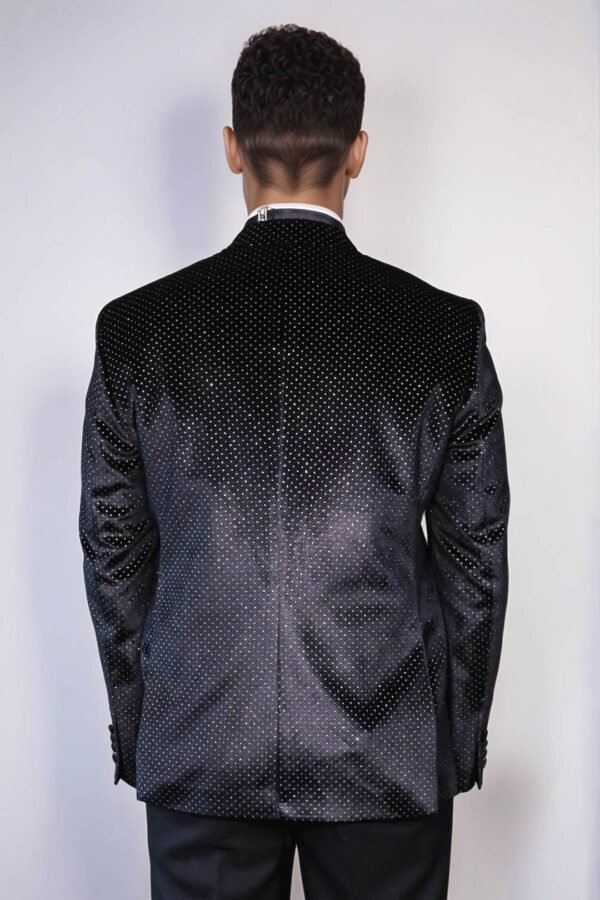 For men who appreciate classic elegance with a modern touch, the Sparkling Dotted Black Tuxedo Jacket is the ultimate choice for standing out in style!