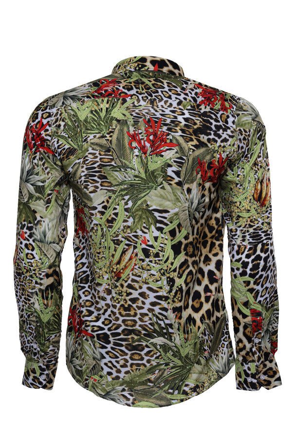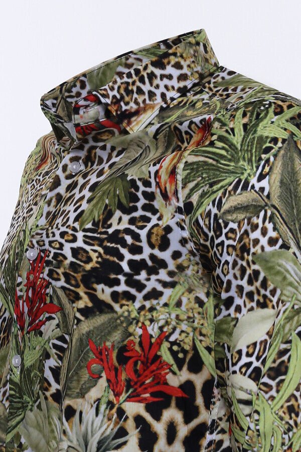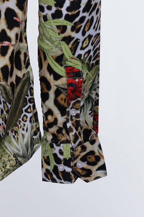 Tiger Patterned Slim Fit Long Sleeves Multicolor Men Shirt