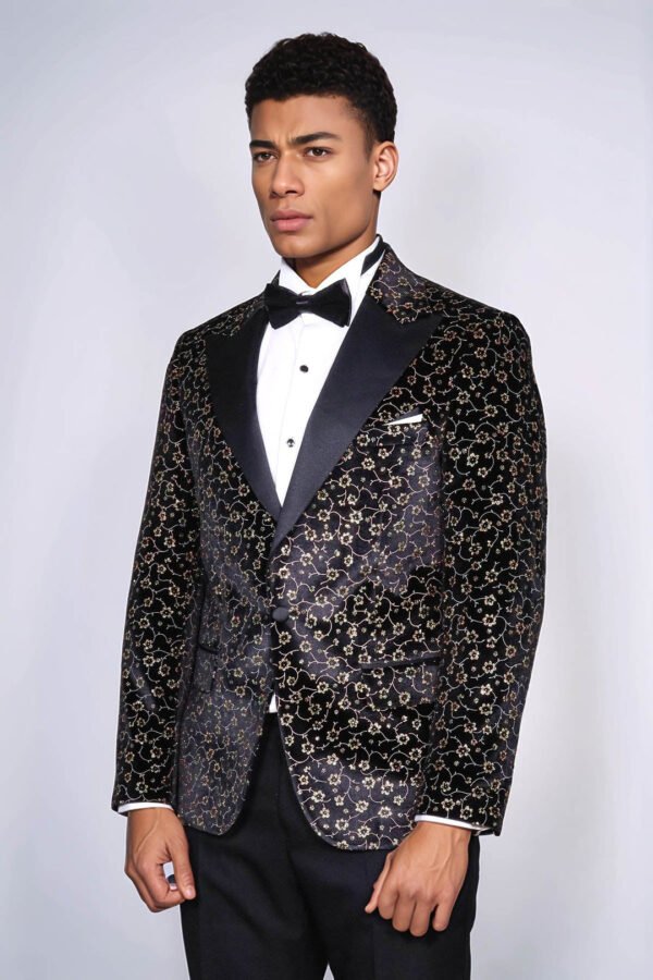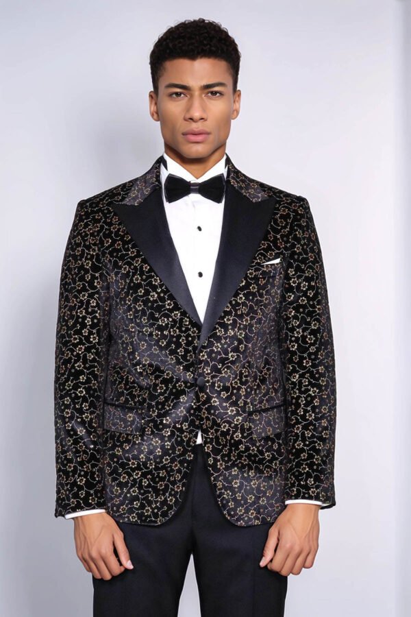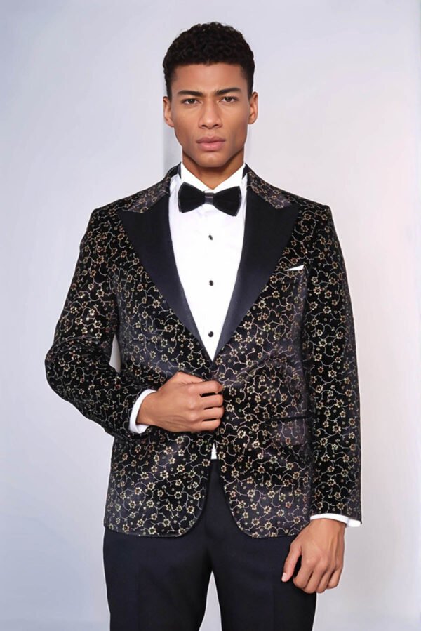 With the changing of the seasons comes an opportunity to update your fashion wardrobe. When it comes to style and sophistication, nothing makes a bolder statement than a trendy men blazer. Whether you are looking for something to wear to the office or on a night out, you will find the perfect blazer to fit any occasion. Make an unforgettable statement with this one-of-a-kind men’s black blazer! Featuring a unique small flower pattern, this slim fit blazer is perfect for special occasions such as a black tie event or even prom. Not only will you look stylish in the sleek design and peak lapel, but you’ll also be able to stand out in the crowd with its unique flower pattern.