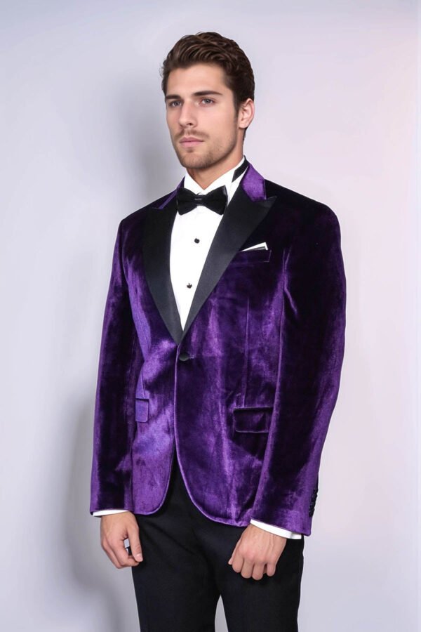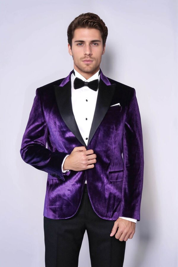 Introducing our Velvet Slim Fit Single Button Purple Men’s Prom Blazer – a luxurious and sophisticated choice for your special occasion. Crafted with meticulous attention to detail, this blazer is designed to make a lasting impression at prom or any formal event. The slim fit silhouette offers a modern and tailored look, flattering your physique while ensuring comfort throughout the night. The rich purple velvet fabric exudes opulence and adds a touch of regal elegance to your ensemble. Featuring a single-button closure, this blazer combines classic charm with contemporary style. Whether it’s prom night, a wedding, or a gala, this velvet blazer is sure to turn heads and make you stand out from the crowd. Pair it with tailored trousers and a crisp white shirt for a polished look, or dress it down with dark jeans for a more relaxed yet sophisticated ensemble. Elevate your prom attire with our Velvet Slim Fit Single Button Purple Men’s Prom Blazer – where luxury meets style for an unforgettable evening.